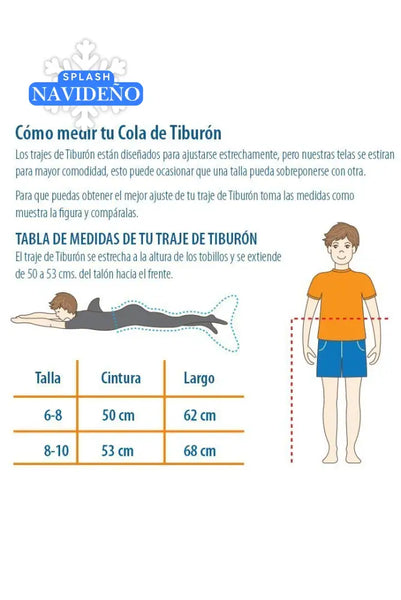 Las Colas de Tiburón vienen en dos tallas: 6-8 y 8-10 en dos vibrantes colores: Marino-Rey y Gris-Naranja.