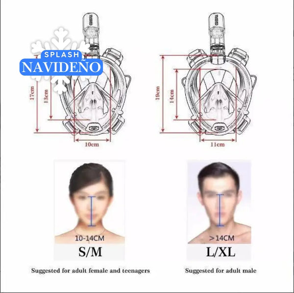 Increíble máscara snorkel con diseño panorámico de área visual de 180°. Conecta fácilmente tu cámara deportiva a través del montaje de cámara integrado que te permitirá llevar registros del mundo submarino con las manos libres, ideal para los amantes del buceo y las aventuras bajo el agua.