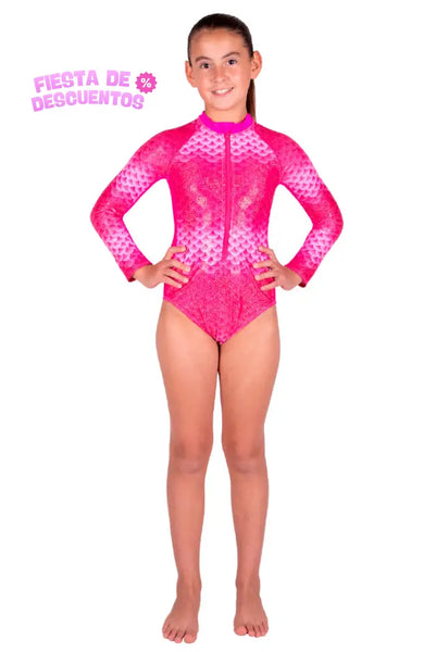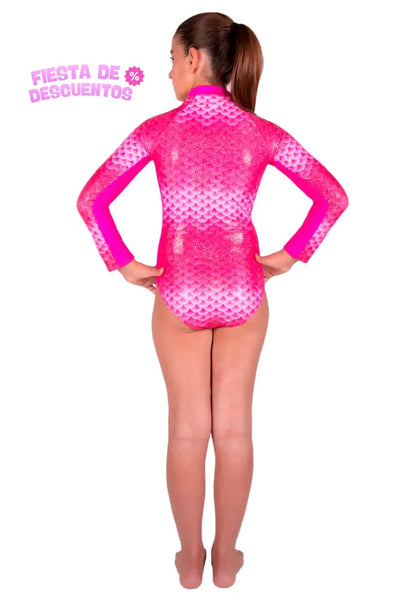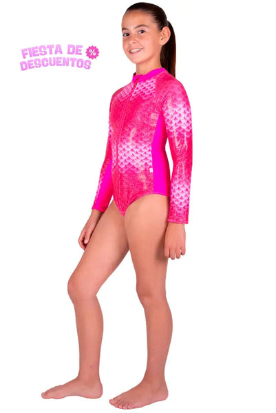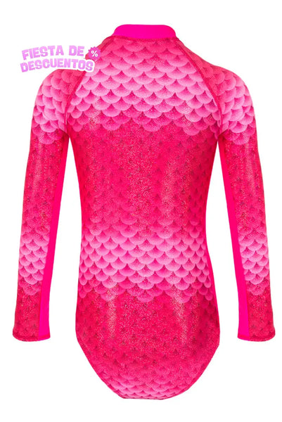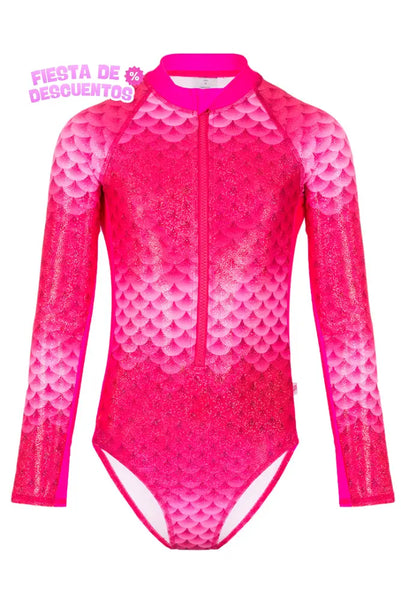 Deja que tu magia de sirena sea también la de una hermosa hada, con este Traje de Baño Completo Manga Larga Funny Pink, que te protege del sol.